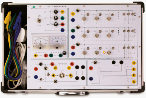 電工技術(shù)實(shí)驗(yàn)箱主要是進(jìn)行電工學(xué)及電路原理中的強(qiáng)電部分實(shí)驗(yàn),如單相交流電路、三相電路、日光燈電路實(shí)驗(yàn)。本實(shí)驗(yàn)箱由模塊單元和元件庫(kù)相結(jié)合的板面構(gòu)成,全部采用歐洲標(biāo)準(zhǔn)的安全插座和安全實(shí)驗(yàn)導(dǎo)線,連線方便,接觸可靠,而且壽命長(zhǎng)、效率高,有效預(yù)防觸電隱患。實(shí)驗(yàn)面板上印有元件符號(hào)及主要參數(shù)便于學(xué)生識(shí)別。實(shí)驗(yàn)箱結(jié)構(gòu)緊湊實(shí)用直觀,安全可靠,能有效培養(yǎng)學(xué)生的動(dòng)手能力,維修方便、簡(jiǎn)捷?蓾M足各類高、中等院校及職業(yè)技術(shù)類院校開(kāi)設(shè)的電工典型實(shí)驗(yàn)。