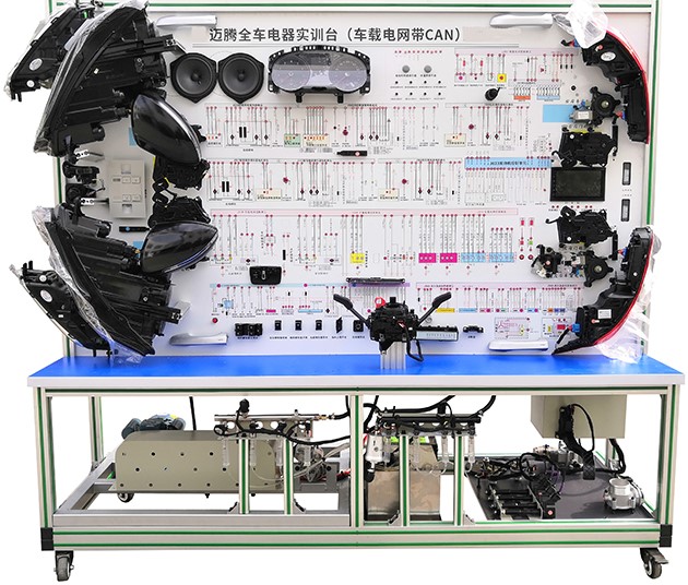 汽車電氣設備實訓室。汽車電器設備實訓室包含有汽車燈光系統(tǒng)、車載網絡系統(tǒng)、全車電器系統(tǒng)、汽車啟動系統(tǒng)、汽車空調系統(tǒng)、全車線路試驗臺、等實訓教學設備。該實訓室可以承擔《汽車構造》、《汽車電器設備》、《汽車電控系統(tǒng)》、《汽車檢測與診斷》等課程的實踐教學任務。可以用于研究、分析全車電器系統(tǒng)、燈光系統(tǒng)、儀表系統(tǒng)等電器設備的電路及功能。利用這些系統(tǒng)進行實踐教學,使學生熟悉汽車電器的結構和工作原理,掌握各個系統(tǒng)的基本組成電路,掌握主要電路的檢測方法和系統(tǒng)的故障特征,從而具有一定的檢測和調校能力。