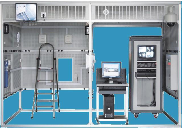 建筑模型由標(biāo)準(zhǔn)規(guī)格的鋁合金工業(yè)型材和網(wǎng)孔式安裝板組成,設(shè)有總電源箱。建筑模型分為智能大樓(小區(qū))和管理中心兩部分,安保區(qū)域設(shè)有單元門和單戶窗,實現(xiàn)智能小區(qū)對講門禁系統(tǒng)的設(shè)備安裝、智能大樓室內(nèi)安防系統(tǒng)的設(shè)備安裝等工程訓(xùn)練,實現(xiàn)單元和單戶可視對講功能。