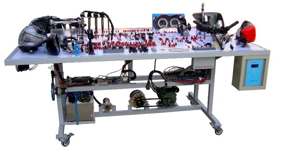汽車電氣設(shè)備實訓(xùn)室。汽車電器設(shè)備實訓(xùn)室包含有汽車燈光系統(tǒng)、車載網(wǎng)絡(luò)系統(tǒng)、全車電器系統(tǒng)、汽車啟動系統(tǒng)、汽車空調(diào)系統(tǒng)、全車線路試驗臺、等實訓(xùn)教學(xué)設(shè)備。該實訓(xùn)室可以承擔(dān)《汽車構(gòu)造》、《汽車電器設(shè)備》、《汽車電控系統(tǒng)》、《汽車檢測與診斷》等課程的實踐教學(xué)任務(wù)。可以用于研究、分析全車電器系統(tǒng)、燈光系統(tǒng)、儀表系統(tǒng)等電器設(shè)備的電路及功能。利用這些系統(tǒng)進(jìn)行實踐教學(xué),使學(xué)生熟悉汽車電器的結(jié)構(gòu)和工作原理,掌握各個系統(tǒng)的基本組成電路,掌握主要電路的檢測方法和系統(tǒng)的故障特征,從而具有一定的檢測和調(diào)校能力。