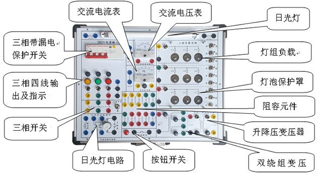 交流電路實(shí)驗(yàn)箱 主要是進(jìn)行"電工學(xué)"及"電路原理"中的強(qiáng)電部分實(shí)驗(yàn),如單相交流電路、三相電路、日光燈電路實(shí)驗(yàn)。本實(shí)驗(yàn)箱由模塊單元和元件庫(kù)相結(jié)合的板面構(gòu)成,全部采用歐洲標(biāo)準(zhǔn)的安全插座和安全實(shí)驗(yàn)導(dǎo)線, 連線方便,接觸可靠,而且壽命長(zhǎng)、效率高,有效預(yù)防觸電隱患。實(shí)驗(yàn)面板上印有元件符號(hào)及主要參數(shù)便于學(xué)生識(shí)別。實(shí)驗(yàn)箱結(jié)構(gòu)緊湊實(shí)用直觀,安全可靠,能有效培養(yǎng)學(xué)生的動(dòng)手能力,維修方便、簡(jiǎn)捷?蓾M足各類高、中等院校及職業(yè)技術(shù)類院校開(kāi)設(shè)的電工典型實(shí)驗(yàn)。