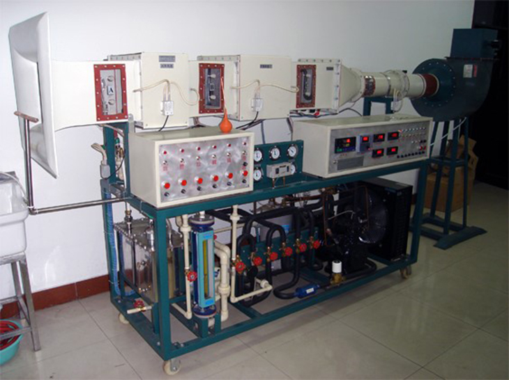 本裝置集直流空調(diào),制冷壓縮機(jī)性能,制冷熱泵,表冷器性能,加熱器性能于一體,可進(jìn)行空氣的加熱,加濕,冷卻,干燥,蒸發(fā)器,冷凝器進(jìn)行換相,可測出各點(diǎn)溫度、濕度、壓力、風(fēng)量、水流量及功率,計算出制冷量、功率、制冷系數(shù)、效率、并進(jìn)行熱平衡計算。