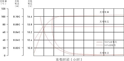 鉛酸蓄電池要求采用限流恒壓的充電方法進(jìn)行充電。在環(huán)境度為25℃的條件下,最佳的浮充電壓為13.6±0.1V 臺(tái)X臺(tái)數(shù),充電開始時(shí)的電流應(yīng)限制在0.25C10A的范圍內(nèi)。