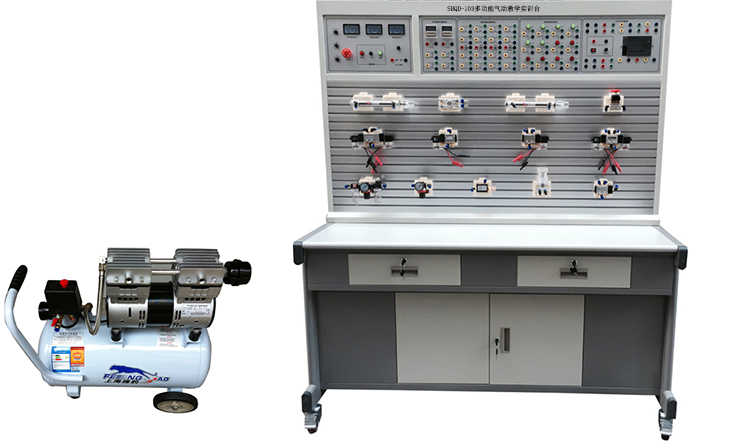 多功能氣動教學實訓臺、氣動PLC控制實驗裝置是根據(jù)《液壓與氣壓傳動》、《氣動控制技術》等通用教材內容要求,參考廣大師生的建議,精心設計而成。該系統(tǒng)除了可以進行常規(guī)的氣動基本控制回路實驗外,還可進行模擬氣動控制技術應用實驗、氣動技術課程設計,以及可編程控制器(PLC)學習及其基本應用實驗等,是機電完美結合的典型實驗設備。