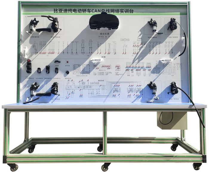 新能源比亞迪車載網絡實訓臺采用比亞迪e5 電動汽車CAN-BUS系統(tǒng)等真實器件制作的實驗實訓臺架,可電動汽車CAN-BUS系統(tǒng)相關的實驗實訓內容。適合于各類院校對純電動車CAN總線網絡系統(tǒng)理論和維修實訓的拆裝與維護、結構與原理認知、系統(tǒng)操作、功能動態(tài)演示、故障檢測與診斷教學需要。
