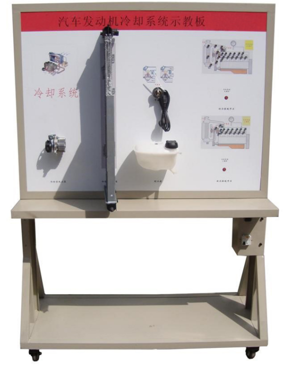 2.示教板面板采用耐創(chuàng)擊、耐污染、防火、防潮的高級鋁塑板,表面經(jīng)特殊工藝噴涂底漆處理;面板打印有永不褪色的彩色電路圖與工作原理示意圖;學員可直觀對照發(fā)動機冷卻系統(tǒng)結(jié)構(gòu)原理圖和實物,認識和分析發(fā)動機冷卻系統(tǒng)的工作原理。