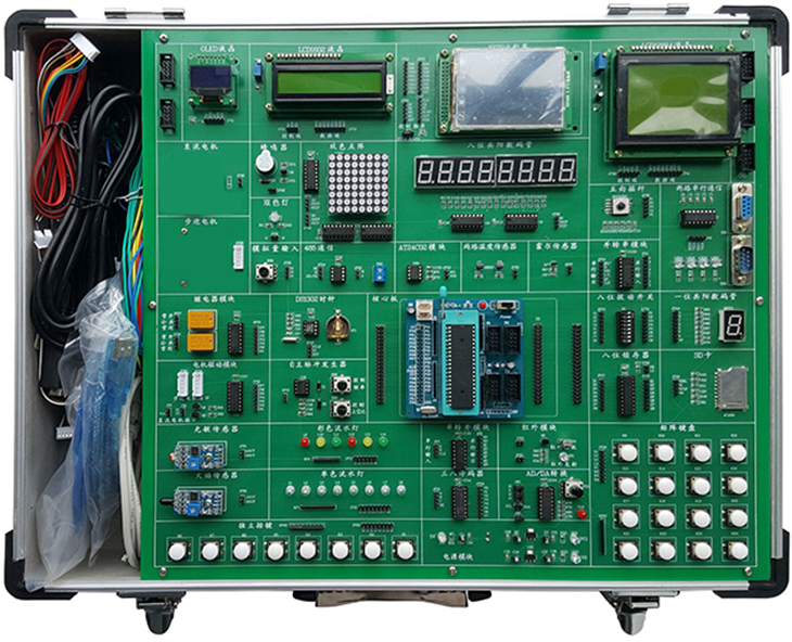 單片機(jī)實(shí)訓(xùn)箱是將MCGS工業(yè)組態(tài)軟件應(yīng)用于單片機(jī)控制系統(tǒng)中,直觀形象地展示實(shí)際自動(dòng)控制工業(yè)場景。平臺(tái)主要用于學(xué)習(xí)51/52系列單片機(jī)基礎(chǔ)應(yīng)用技術(shù)和綜合應(yīng)用技術(shù),包含有單片機(jī)原理、各類控制技術(shù)、各種數(shù)據(jù)通信技術(shù)、系統(tǒng)設(shè)計(jì)技術(shù)。向用戶提供眾多外圍器件和設(shè)備接口,可使用戶快速掌握單片機(jī)原理及其實(shí)用接口技術(shù),充分了解和掌握當(dāng)今單片機(jī)領(lǐng)域流行的各種外設(shè)器件應(yīng)用。
