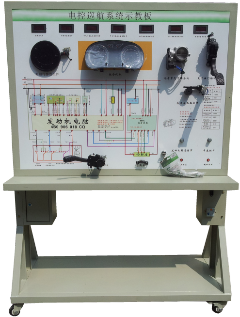 操縱油門踏板位置傳感器可實現(xiàn)節(jié)氣門開度的調(diào),可真實展示電子節(jié)氣門的工作原理和工作過程;操縱巡航控制開關(guān)和車速信號,設(shè)定巡航狀態(tài),引擎控制單元可對節(jié)氣門開度進行調(diào)節(jié),真實演示汽車電子巡航系統(tǒng)的工作過程和工作原理。