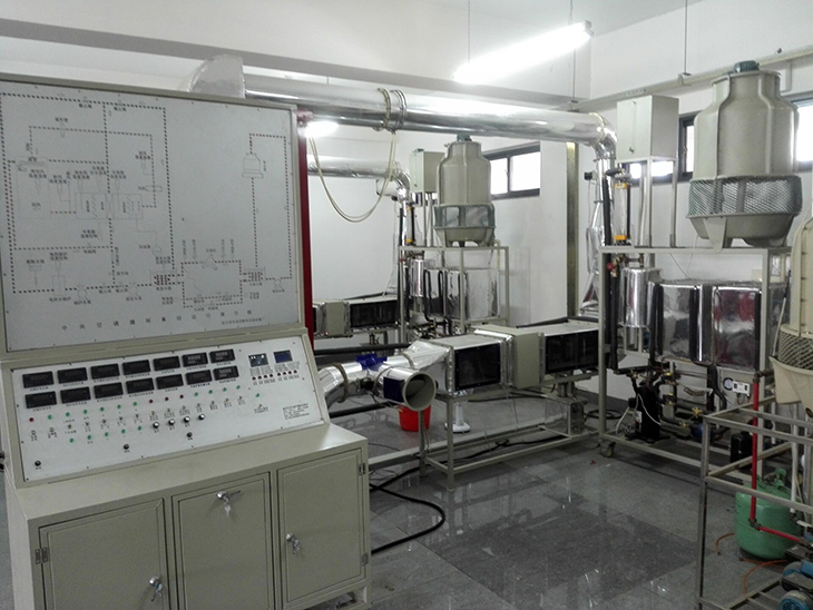 (1)具有蒸汽壓縮式集中式和半集中式中央空調(diào)系統(tǒng)的功能,主要由冷源系統(tǒng)、熱源系統(tǒng)、空氣處理及配送系統(tǒng)及控制與顯示系統(tǒng)等組成。可滿足學(xué)校既能開出驗證性實驗,也可以開設(shè)故障設(shè)置性實驗滿足畢業(yè)設(shè)計、教師科研、創(chuàng)新實驗室所需,能實現(xiàn)一機多用。