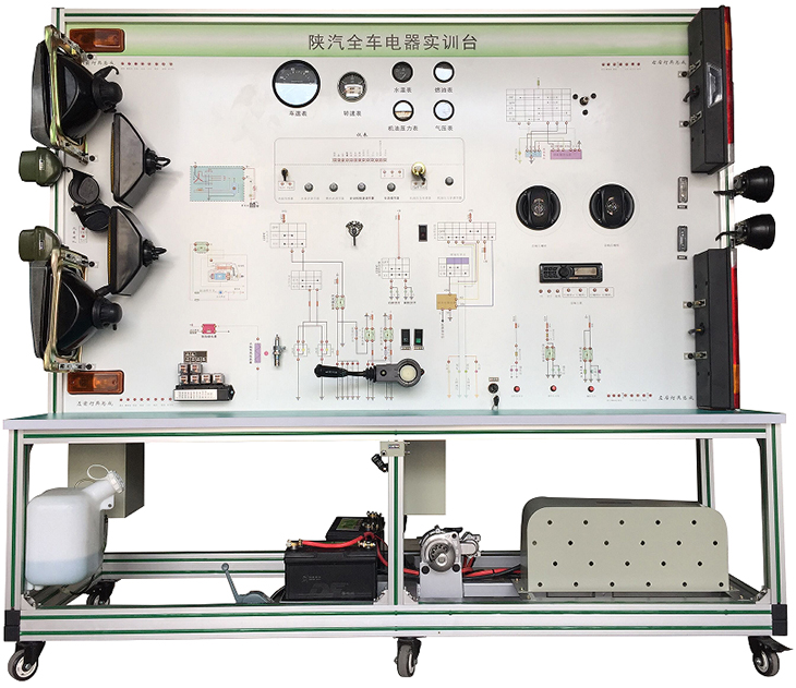 全車電路實(shí)訓(xùn)臺、該設(shè)備采用陜汽SX2190柴油機(jī)整車電器實(shí)物為基礎(chǔ),充分展示汽車儀表系統(tǒng)、燈光系統(tǒng)、雨刮系統(tǒng)、喇叭系統(tǒng)、發(fā)動機(jī)電器系統(tǒng)、起動系統(tǒng)和充電系統(tǒng)等汽車電器各系統(tǒng)的組成結(jié)構(gòu)和工作過程。
