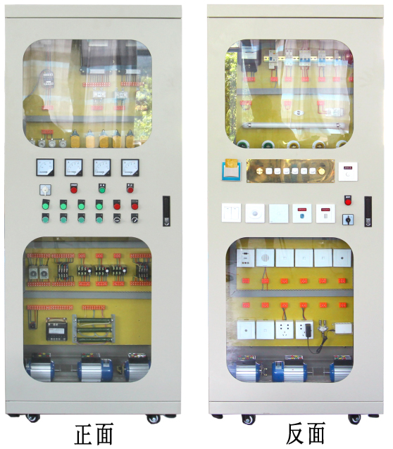 前后開(kāi)門四玻電氣柜、柜內(nèi)按裝架、實(shí)訓(xùn)操作板、接線裝置、漏電斷路器、熔斷器、電流互感器、單相電度表、床頭控制面板、日光燈、白熾燈、單聯(lián)開(kāi)關(guān)、單相異步電動(dòng)機(jī)、門鈴、插卡取電插座、請(qǐng)勿打擾插座、聲光控延時(shí)開(kāi)關(guān)、人體自動(dòng)感應(yīng)開(kāi)關(guān)、觸摸延時(shí)開(kāi)關(guān)感應(yīng)開(kāi)關(guān)、無(wú)線遙控開(kāi)關(guān)、調(diào)光開(kāi)關(guān)、燈座、插座、分配器、有線電視信息端座、音視頻信息端座、電話信息端座、網(wǎng)絡(luò)信息端座、三相四線有功電度表、接觸器、中間繼電器、時(shí)間繼電器、熱繼電器、行程開(kāi)關(guān)、按鈕、信號(hào)燈、萬(wàn)能轉(zhuǎn)換開(kāi)關(guān)、電壓表、電流表、三相電機(jī)、聲光報(bào)警器、檢修開(kāi)關(guān)、報(bào)警選擇開(kāi)關(guān)和故障開(kāi)關(guān)等。