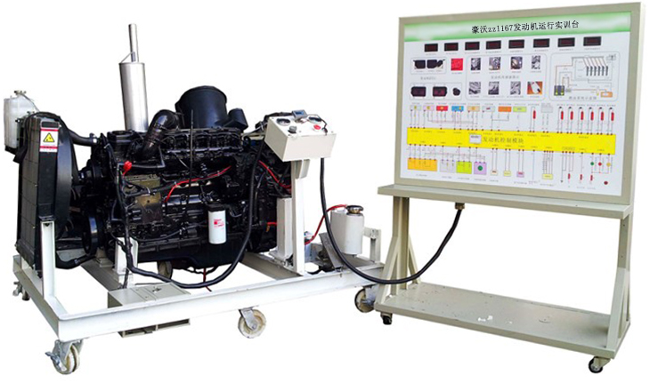 豪沃zz1167發(fā)動機運行實訓系統(tǒng)以翻新 豪沃zz1167汽車國三原廠柴油發(fā)動機總成。及運行附件為主體部件,發(fā)動機可起動運行,進行起動、加速、減速、故障檢測與診斷、故障模擬與排除等工況的實際操作,真實展示柴油發(fā)動機結構與原理及工作過程。