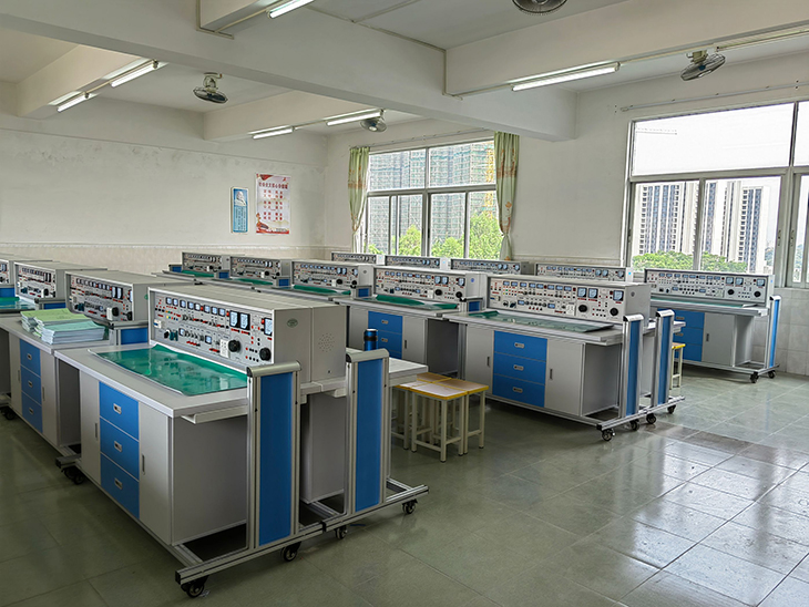 電氣裝配實(shí)訓(xùn)室設(shè)備、電氣自動(dòng)化實(shí)驗(yàn)實(shí)訓(xùn)室設(shè)備主要服務(wù)于電氣自動(dòng)化技術(shù)、機(jī)電一體化技術(shù)、機(jī)械制造自動(dòng)化、數(shù)控技術(shù)等專(zhuān)業(yè)的電類(lèi)課程的實(shí)驗(yàn)實(shí)訓(xùn)任務(wù),為教師從事科研、教學(xué)研究服務(wù),并承擔(dān)著青年教師下電氣實(shí)驗(yàn)實(shí)訓(xùn)室鍛煉的任務(wù)。電氣實(shí)驗(yàn)實(shí)訓(xùn)室一貫秉承“嚴(yán)謹(jǐn)治學(xué)、勇于探索、大膽實(shí)踐、科學(xué)負(fù)責(zé)”的原則,堅(jiān)持培養(yǎng)學(xué)生獨(dú)立思考、獨(dú)立操作、獨(dú)立分析問(wèn)題的能力,培養(yǎng)運(yùn)用基本理論分析處理實(shí)際問(wèn)題的方法。電氣裝配實(shí)訓(xùn)室、電氣自動(dòng)化實(shí)訓(xùn)室的建設(shè),已逐步形成涵蓋多學(xué)科、多專(zhuān)業(yè)的實(shí)驗(yàn)實(shí)訓(xùn)教學(xué)平臺(tái),根據(jù)學(xué)科發(fā)展和人才培養(yǎng)的需求,建立起了一個(gè)合理分工、緊密銜接,由基礎(chǔ)到綜合的實(shí)驗(yàn)實(shí)訓(xùn)教學(xué)體系。電氣裝配實(shí)訓(xùn)室、電氣自動(dòng)化實(shí)訓(xùn)室分別為電工技術(shù)實(shí)驗(yàn)實(shí)訓(xùn)室、電子技術(shù)實(shí)驗(yàn)實(shí)訓(xùn)室、高級(jí)電工實(shí)訓(xùn)室、微機(jī)控制與仿真實(shí)訓(xùn)室、電氣控制綜合實(shí)訓(xùn)室、自動(dòng)生產(chǎn)線(xiàn)實(shí)訓(xùn)室、數(shù)控設(shè)備維修實(shí)訓(xùn)室、電子產(chǎn)品裝配實(shí)訓(xùn)室。